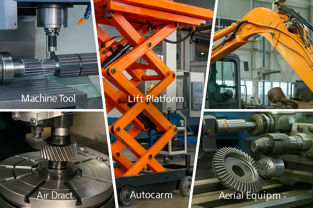 Pada differential mobil, bevel gear merupakan bagian yang sangat diperlukan, yang memungkinkan roda kiri dan kanan berputar bebas saat berbelok tanpa saling mengganggu. Banyak pelanggan juga akan memilih gigi bevel saat merancang peredam atau struktur kemudi sudut karena transmisinya stabil dan memakan lebih sedikit ruang. Jika peralatan itu sendiri memiliki batasan volume, namun perlu mencapai keluaran sudut, gigi ini sangat cocok.
