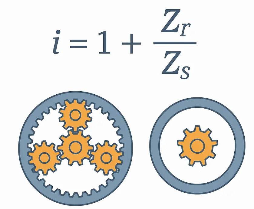 Rasio transmisi i = 1 + (Zr / Zs)